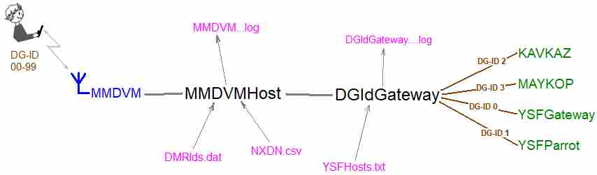 DGIdGateway (который понимает dg-id) может перенаправить подключение на YSFGateway (который понимает x-команд) и таким образом можно задействовать как команды, так и коды! Круто!