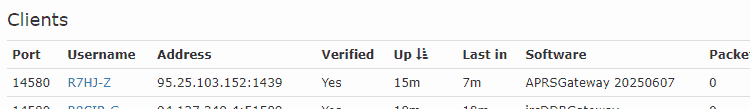 Когда вы запускаете модуль APRSGateway он сам подключается к указанному aprs-серверу (в моём случае это aprs.dstar.su) и в его дашборде это видно.