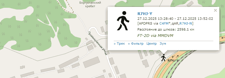 Каждая C4FM-радиостанция у которой включен GPS, и которую услышит ваша точка доступа, будет отмечена на карте, примерно так. Я передавал (на частоте линка) с радиостанции Yaesu FT2DR (модель радиостанции распознаётся автоматически).