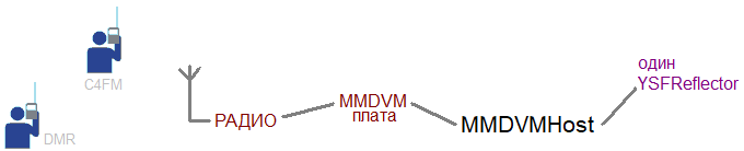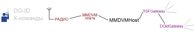 Эта конфигурация подробно описана в статье "MMDVMHost для YSF". Сама по себе, эта конфигурация DG-ID и X-команд не понимает.